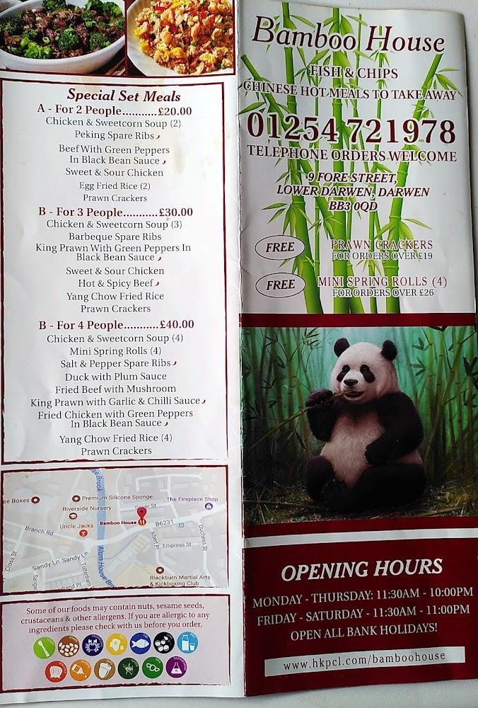 Bamboo House is situated at 9 Fore St in Lower Darwen, making it easily accessible for locals and visitors alike. Nestled within a community that embraces culinary diversity, this establishment offers a delightful mix of authentic Chinese and traditional British dishes. The surrounding area features convenient street parking and a welcoming atmosphere that encourages you to kick back and enjoy some comfort food. Bamboo House features a wheelchair-accessible entrance and seating, making it a friendly option for everyone. Whether you're stopping by for a quick lunch or planning a nice dinner with friends, the stance of Bamboo House as a local favorite keeps growing. Keep an eye out for the cozy decor that sets the right mood for a laid-back meal. It gets busy on Fridays, especially at dinner time when the delicious aromas fill the air—locals gather for takeaways or table service, ensuring that you join the ranks of happy diners.